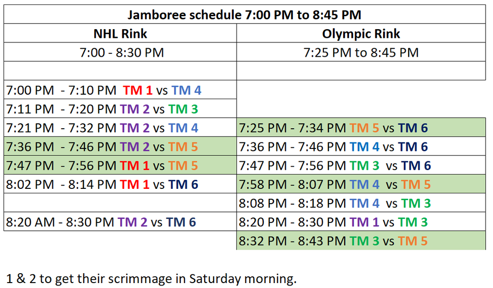 We are "TM 5" on the schedule and have to do a few quick moves between rinks.